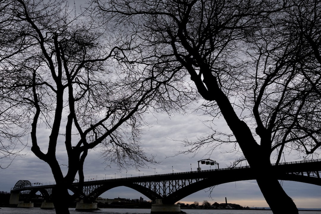 圖1/2 2025年4月2日,美國華盛頓州布萊恩市,美加邊境和平拱門口岸上空飄揚的旗幟。路透社/David Ryder/資料圖