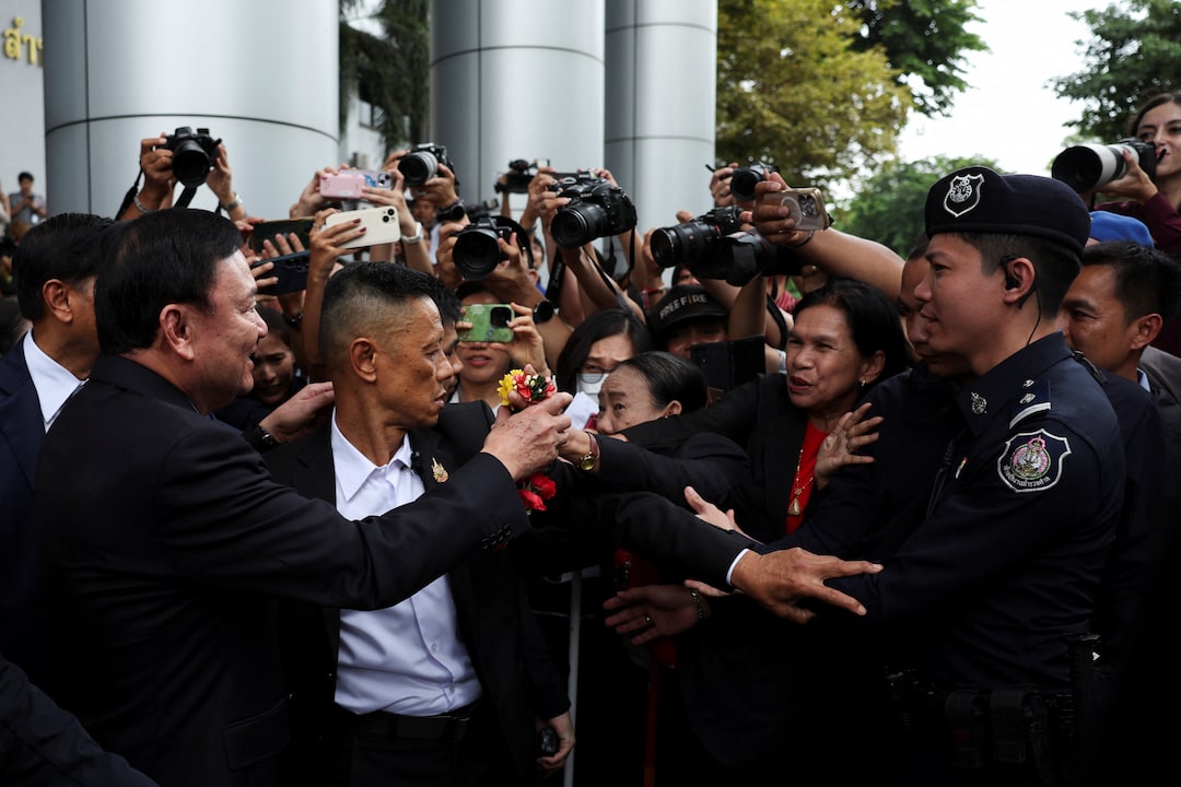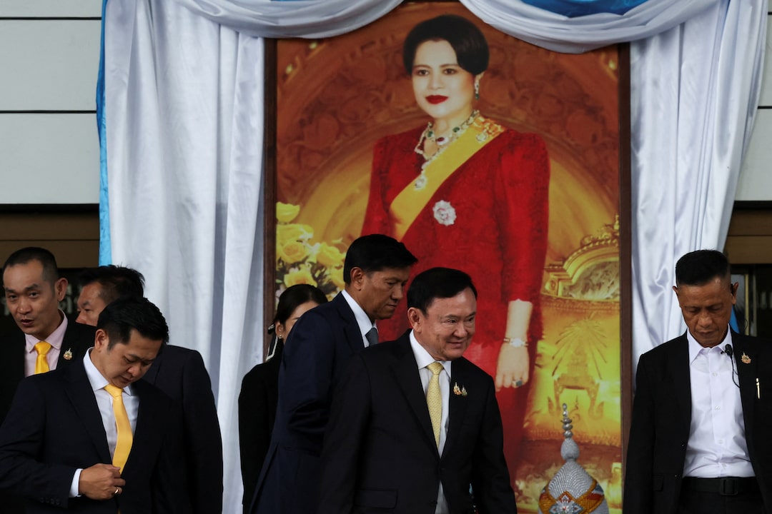 6項中的第1項 泰國前總理他信·西那瓦離開泰國刑事法庭,該法庭根據泰國刑法第112條,撤銷了他在2015年於韓國流亡期間接受採訪時涉及的冒犯君主罪(又稱侮辱王室案)的指控,2025年8月22日攝於泰國曼谷。路透社/查麗妮·提拉蘇帕 今日焦點圖片