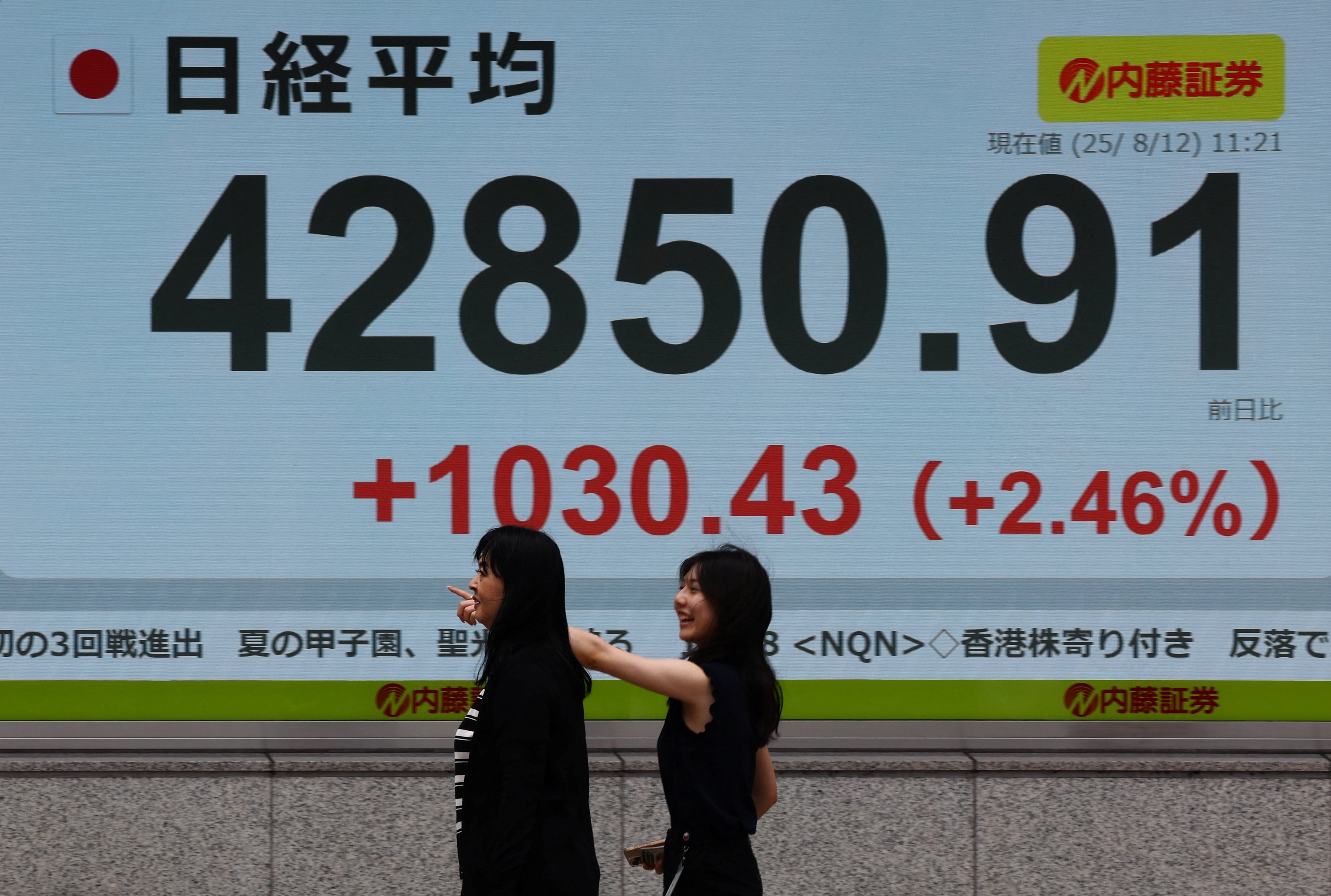 2025年8月12日,日本東京,行人走過一家證券公司外顯示日經平均股價的電子看板。路透社/Kim Kyung-Hoon/檔案照片購買授權許可,打開新標籤頁新加坡,8月22日(路透社)——週五亞洲股市多數維持在安全區間內,交易員們正等待美聯儲主席傑羅姆·鮑威爾本週末在傑克遜霍爾年度研討會上發表的關鍵演講,該演講可能為貨幣政策方向提供線索。