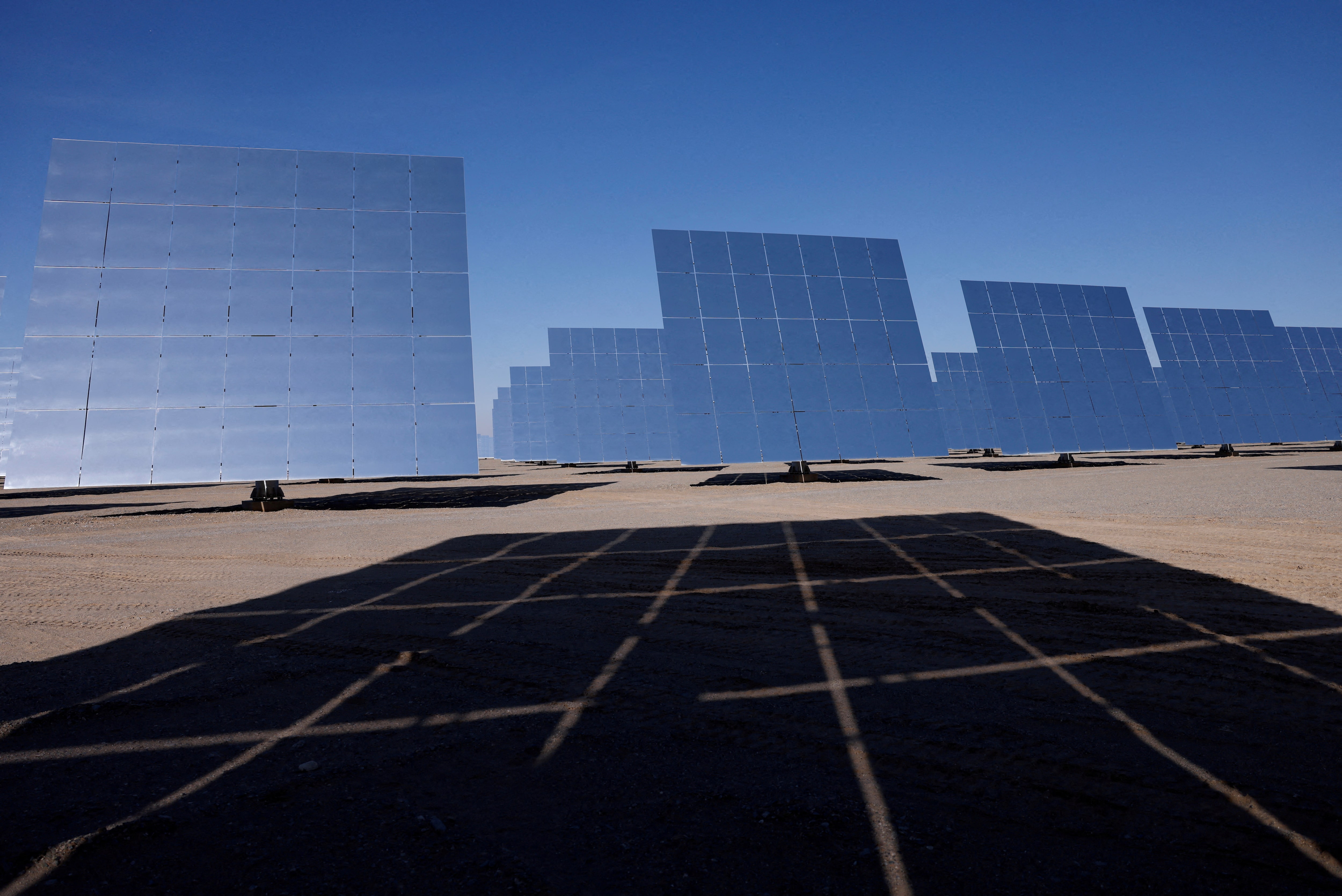 2024年10月16日,中國甘肅省敦煌光伏產業園組織的媒體參觀活動中,敦煌首航100兆瓦塔式光熱發電項目定日鏡羣景觀。路透社/Tingshu Wang/檔案照片購買授權許可,新標籤頁打開路透北京8月22日電 - 中國太陽能行業協會週五呼籲製造商停止虧本銷售組件,主張"優勝劣汰"的市場競爭機制,但未直接要求通過關停產能來解決行業供應過剩問題。
