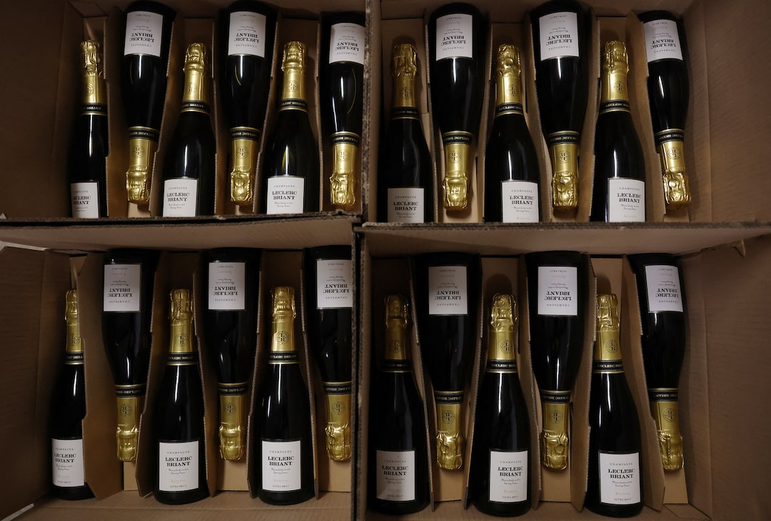 2025年8月22日,法國埃佩爾奈,Leclerc Briant香檳酒莊準備發貨的香檳箱。路透社/Christian Hartmann