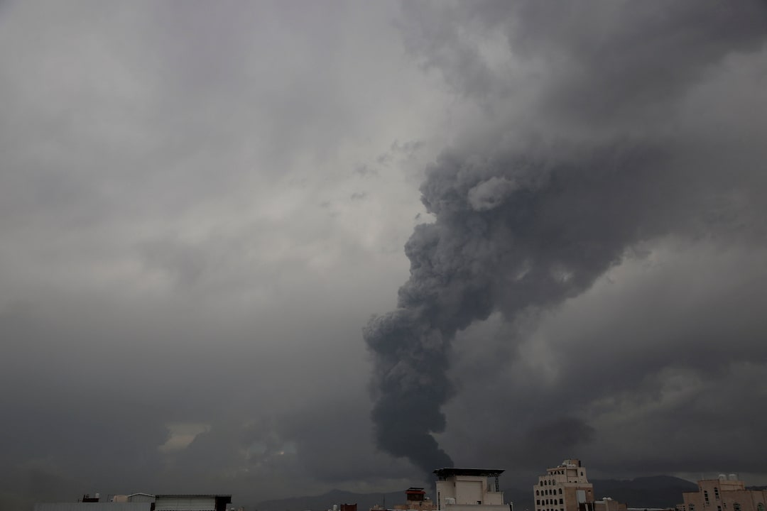 2025年8月24日,也門薩那以色列空襲現場濃煙滾滾。路透社/Stringer