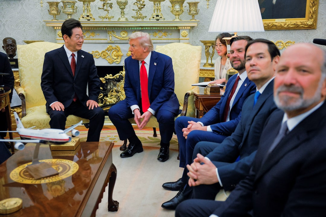 圖集1/5:美國總統唐納德·特朗普於2025年8月25日在華盛頓特區白宮橢圓形辦公室會見韓國總統李在明。路透社/Brian Snyder