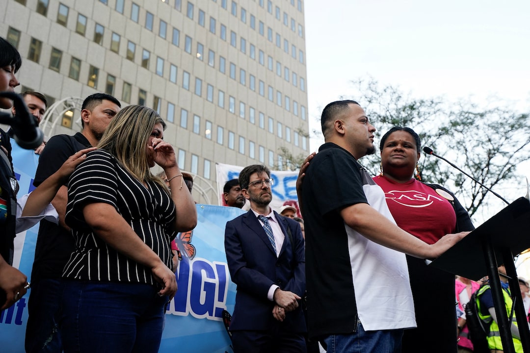 他的美國公民妻子珍妮弗·瓦斯奎茲和兄弟塞薩爾週一早晨陪同阿布雷戈前往ICE外地辦事處,支持者們高呼"是的,我們能”(西班牙語"Si se puede")迎接他。