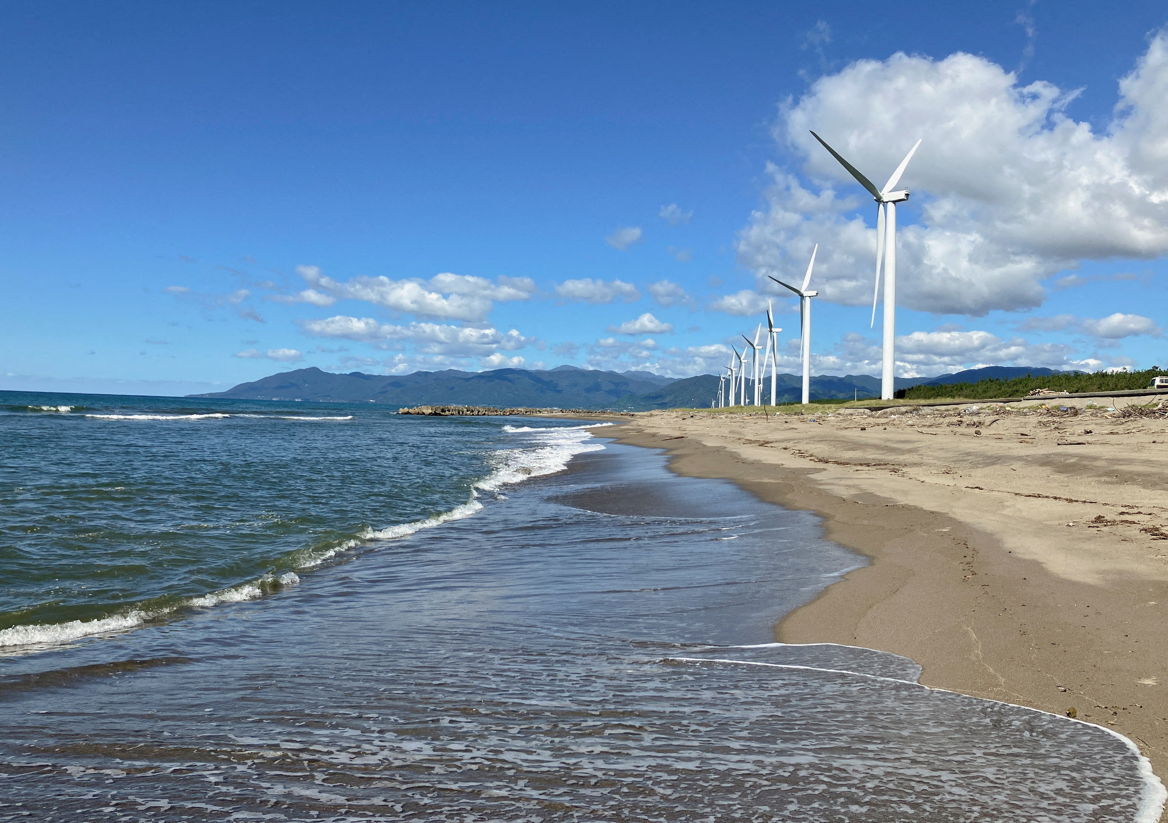 2024年9月23日,日本秋田縣八峯町海灘沿岸的風力發電機。路透社/Katya Golubkova/資料圖購買授權許可,打開新標籤頁東京,8月26日(路透社)——日本產業省和國土交通省週二提議修訂指導方針,將海上風電項目租期從目前的30年延長10年,以幫助開發商應對飆升的建設成本並完成項目。