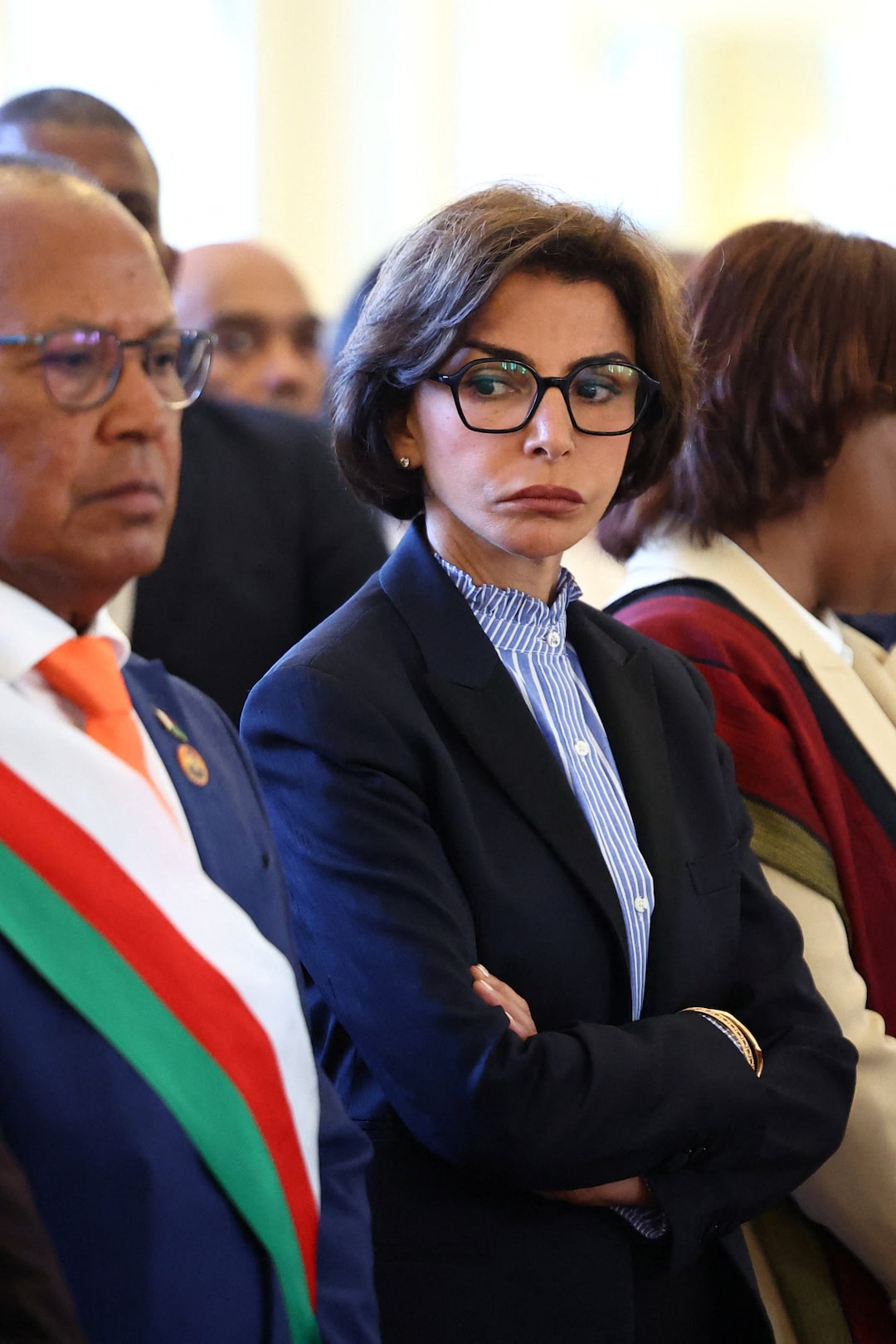 圖1/3:2025年8月26日,法國文化部長拉希達·達蒂在巴黎文化部舉行的儀式上發表講話,紀念三具薩卡拉瓦人頭骨的歸還。這些頭骨包括兩名戰士和據信為被法軍殺害的馬達加斯加國王託埃拉的遺骸,它們於19世紀末法國殖民馬達加斯加期間被掠走。路透社/阿卜杜勒·薩布爾