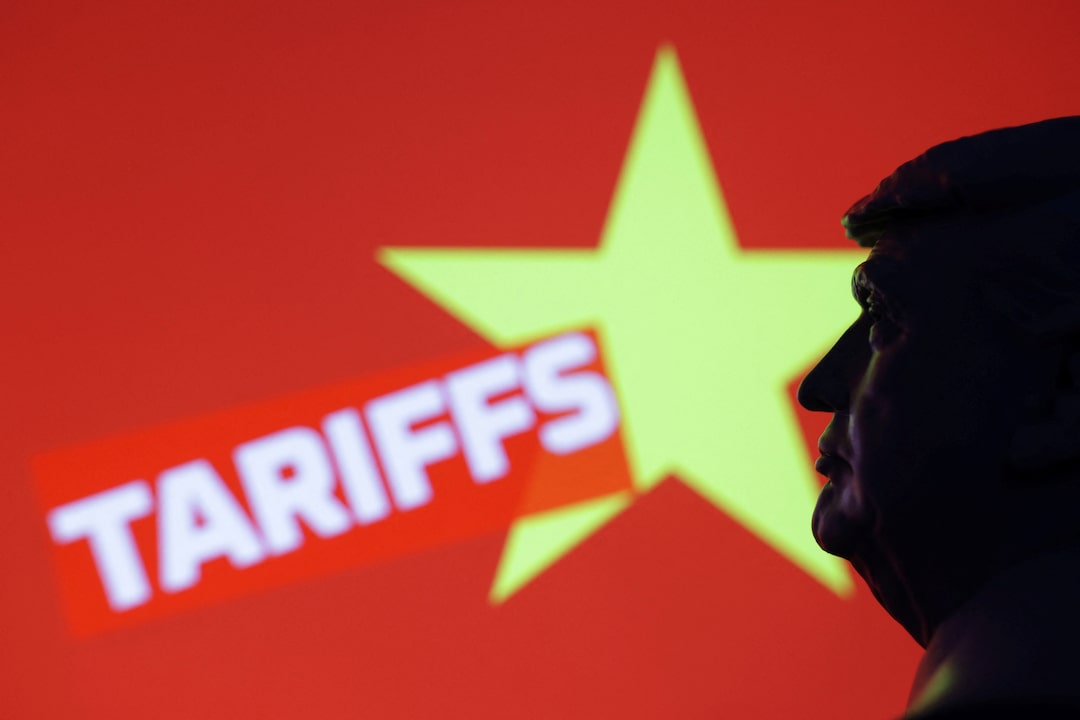 2025年7月23日拍攝的插圖中可見3D打印的美國總統特朗普微縮模型、越南國旗及"關税"字樣。路透社/Dado Ruvic/插圖/檔案照片